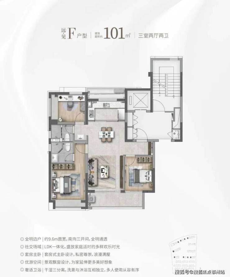 ①建面约101㎡F&G户型:南北通透+三开间朝南,备受认可的飞机户型!