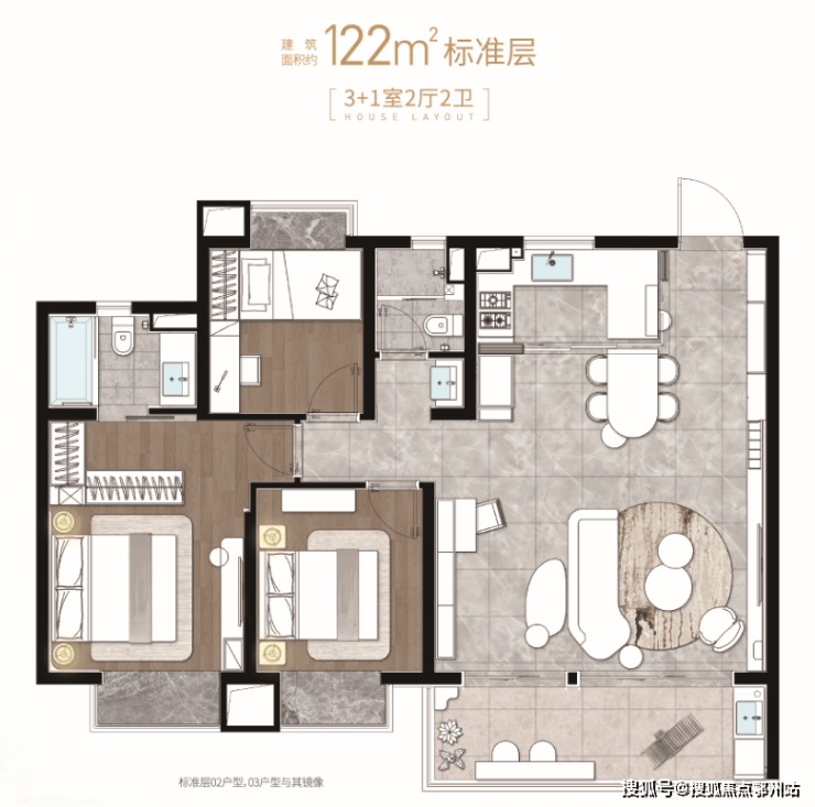 精装高层:122㎡ 3+1室两厅两卫
