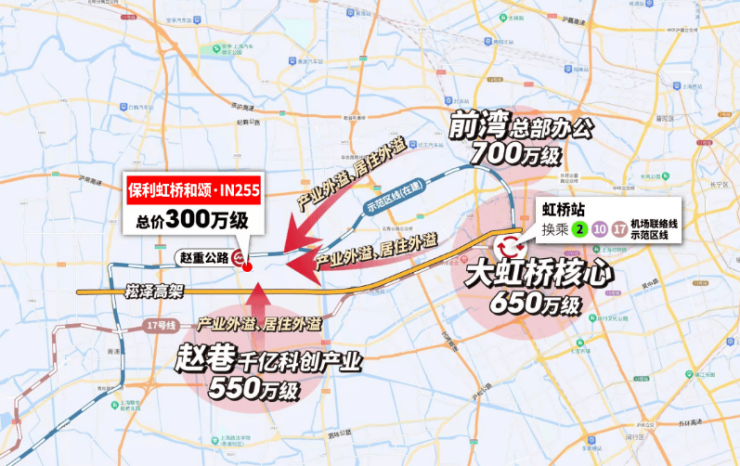 保利虹桥和颂·IN255 不仅有轨交规划正在落地,且直线距离示范区线 赵重公路站 (在建) 仅约600米 , 是不可多得的 真轨交盘,2站前湾、3站虹桥枢纽、5站 华为基地 。