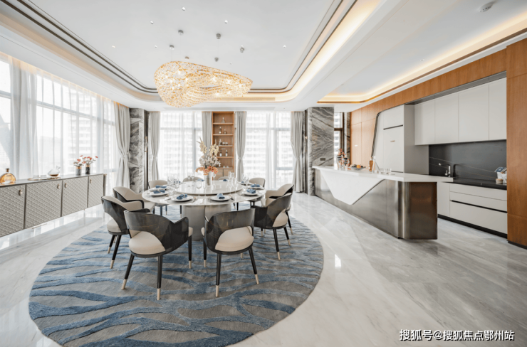 建筑以“金镶玉”为灵感,白色铝板镶嵌香槟金窗框,搭配LOW-E双层中空玻璃幕墙,形成油画框般的立面美学。每户标配约40㎡U型空中花园,可定制私人泳池、森系庭院或星空酒廊,270°全景落地窗将钱江潮涌、西湖群山与城市灯火尽收眼底。