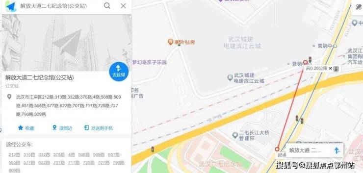 公交方面,解放大道二七纪念馆公交站的线路比较多,截图如下,距离项目约200多米。