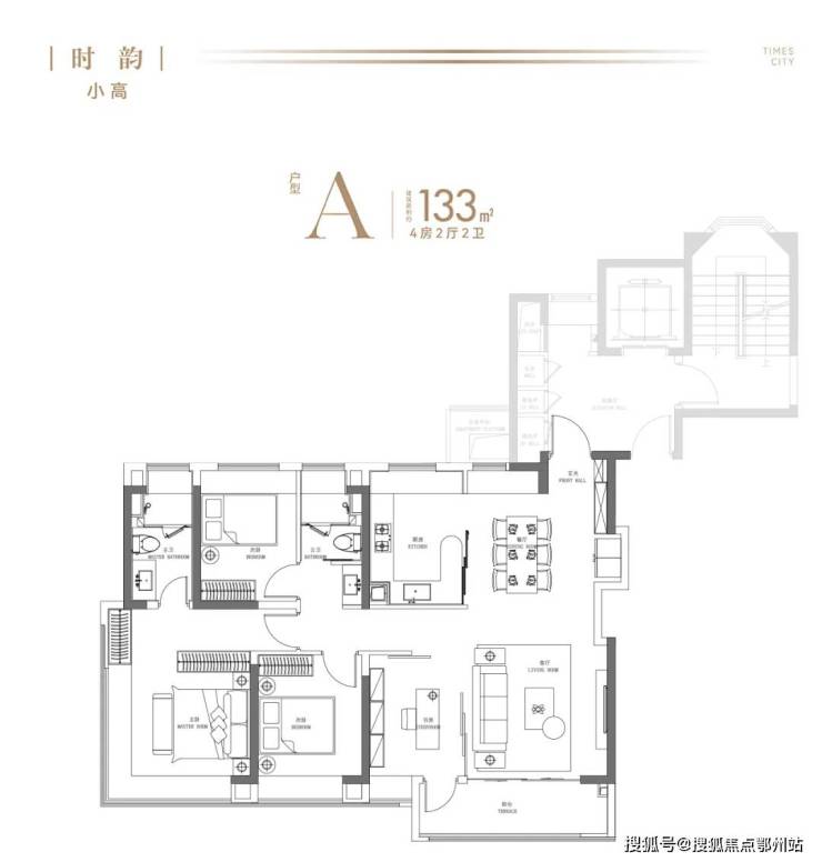 建面约133㎡4房(小高)约5.9m大面宽大横厅+主卧270°转角窗