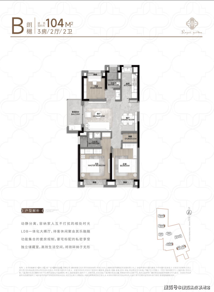 项目预计加推的三期房源,主要包括建面约98-107㎡2-3房。看点有三: