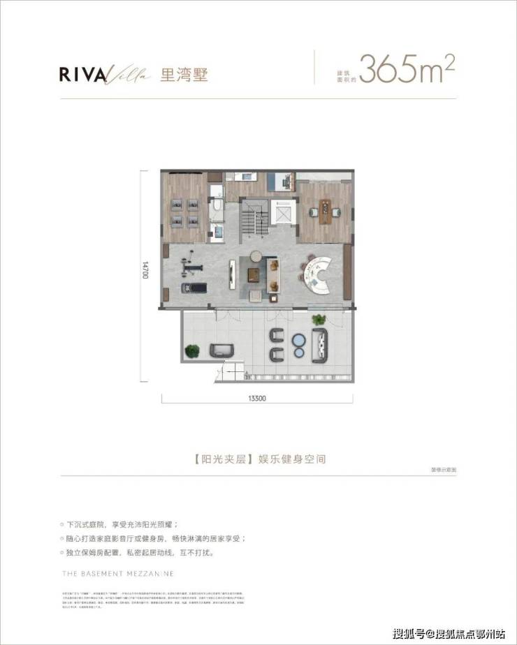 市面上常见的墅类产品地下室只有一个小的采光井,有些甚至连采光也不能保证。而禹洲·印樾府Riva villa里湾墅“神来之笔”的打造了一个 下沉式庭院,让阳光可以慷慨地直射进地下, 光感几乎和在一层一样!