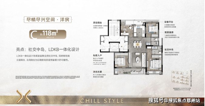 建面约114㎡在有限的空间创造出四房的无限可能,将总价拉低同时,更为餐客边厅设计180°观景视野,以及为二孩家庭定制的连体儿童房,将精致的实用主义贯彻到底。