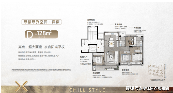 其中建面约128㎡南向四开间排布实现近14米的采光视野,LDKB一体化设计将会客氛围感拉满。璀璨映澜不仅优化了空间布局,同时将居住品质提高一个水准,让家不只是一个居住空间,而是寄托情感的精神归处。
