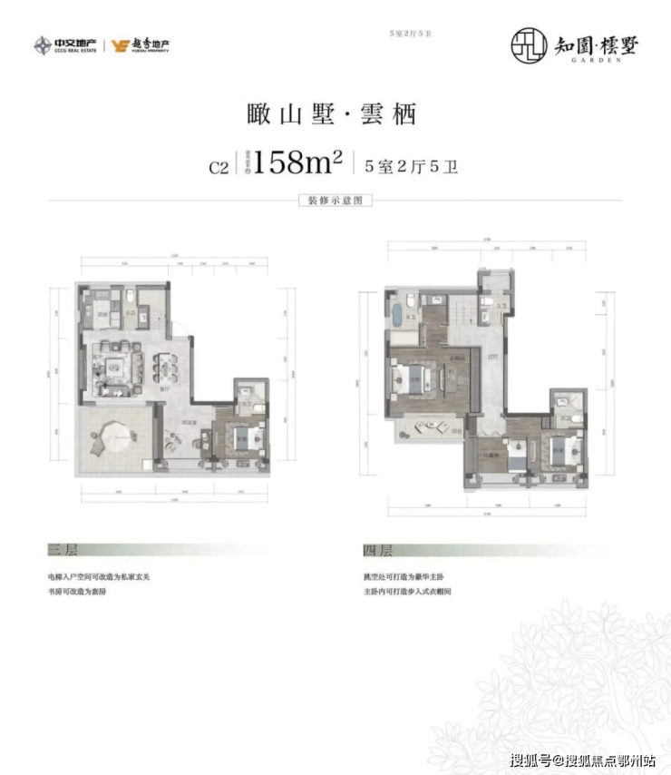 中叠边户158,中间户平层135,155
