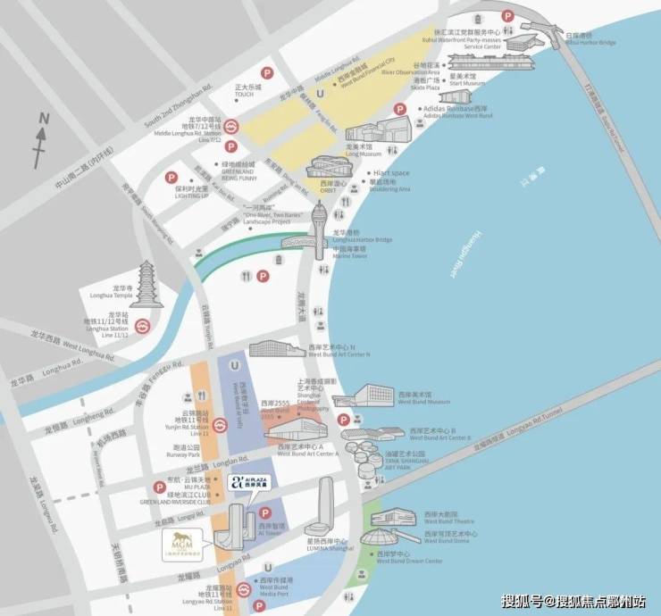 西岸传媒港:徐汇滨江地区开发建设的重要先导项目,总投资312亿元,总用地面积30公顷,已于2021年全面建成,正以中央广播电视总台长三角总部、