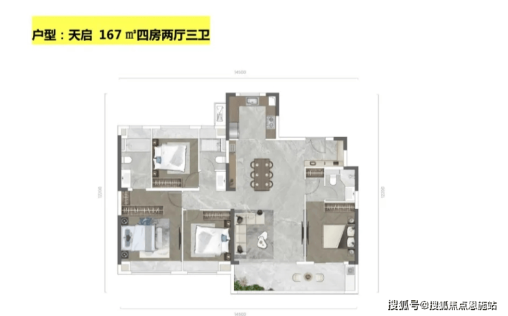 在售情况: 122、136、142㎡三房、四房