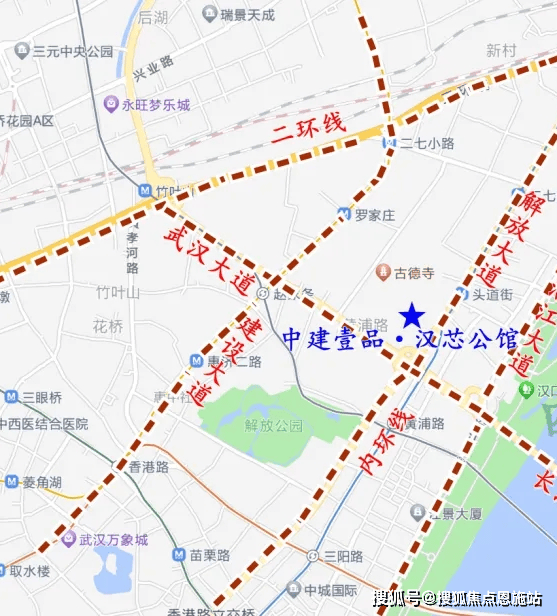 中建壹品汉芯公园位于汉口解放大道头轻轨1号线道街站旁,楼市中属于汉口滨江商务区,行政划分属于江岸区,距离内环线约300米,距离二环约1.6公里。