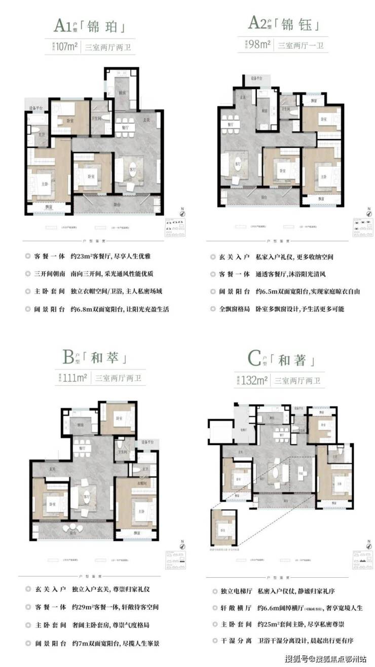 建面约 98-107㎡中高层 / 110-132㎡小高层 ,满足不同阶段人群