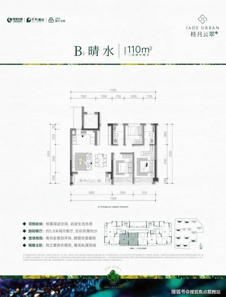 首开户型中,建面 约110㎡户型为市面罕见的大面宽短进深阳光户型;