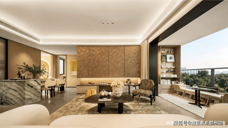 客餐厅一体化设计,尺度不凡的客厅搭配宽景阳台,不管是采光、视野、通风、私密性,还是实用性都十分出色。