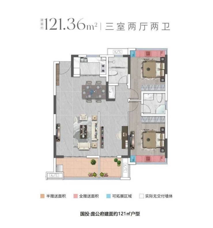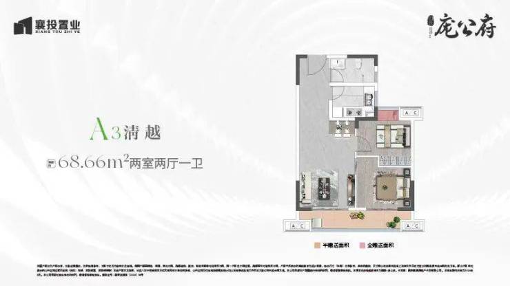 先来看小户型,国投·庞公府有建面 约66-68㎡两室两厅一卫户型: