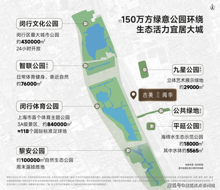 生态:紧邻84万㎡闵行体育公园、43万㎡文化公园,形成150万㎡生态绿轴 2