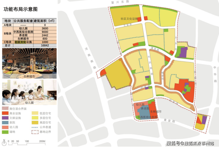 第三片区:以蓬莱路市场、凝和路商业街以及幼儿园、养老院、医院为公共服务配套的居住组团