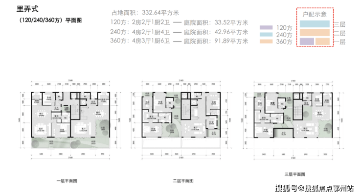 建面约290-360㎡宅院式合院;