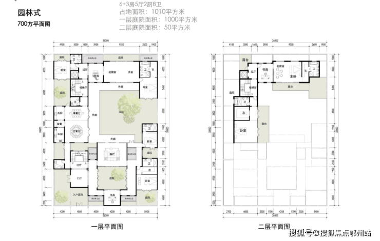 建面约450-700㎡园林式合院;