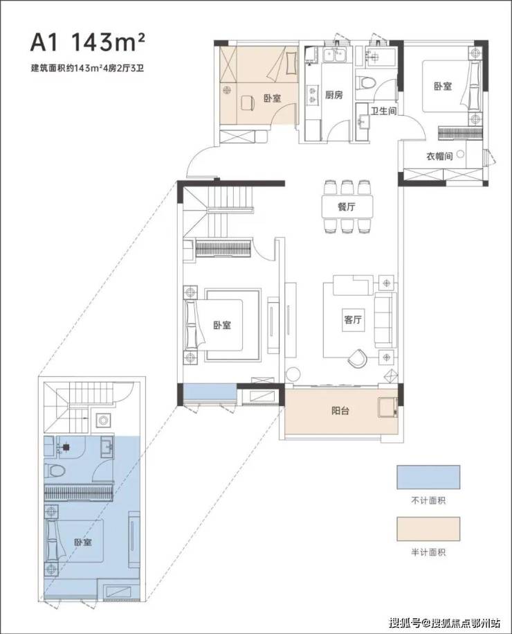 户型图手握 建面约119㎡复式产品,周南学府一出场就可谓大杀四方。原因很简单——