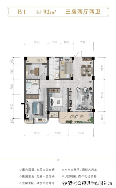 🌟户型细节:瞰景阳台的转角皆优化为圆弧形设计,不仅体现了柔和的美感、也进一步提升了产品独特品质感。