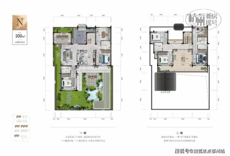 整体容积率1.1,新中式小院组团容积率低至0.41,全部为二层建筑,户户皆有花园和露台,花园面积约120-190㎡,户型舒适度与得房率俱佳。
