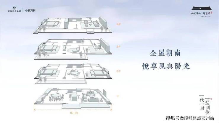 作为中航万科·越望府的明星产品,建面约283㎡阔境别墅全屋四层,每层都诚意设计了 超过10米的大开间, 全屋采光总和超过40米,相较于本案另一明星产品建面约292㎡的传统三层别墅, 采光面至少增加约15%,真正意义上实现了全屋向南,采光无忧。