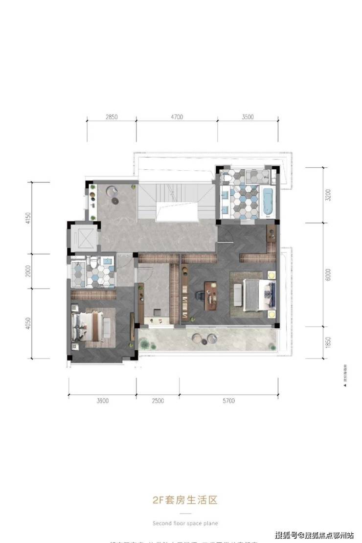 朝南双套房,均带独立卫浴间,三代同堂从容舒享;