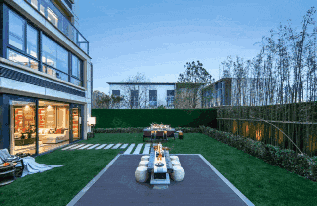 项目打造了南北双酒店式入户大堂,金属质感的造型景墙,配上璀璨的氛围灯,小区中轴曲水流觞,归家仪式感十足。