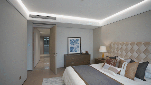 该户型 主卧整体足足有约5.9米的南向开间,比客厅还要开阔。这在整个豪宅领域都是极为少见的!