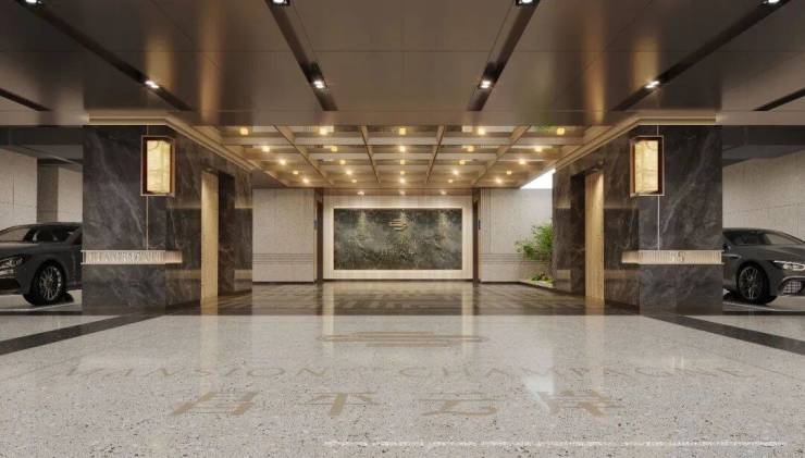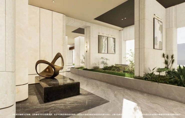 项目一楼设计星级入户大堂,挑高穹顶之下,天然石材与金属线条交织出当代艺术馆般的恢弘气度。这里不仅是归家的第一重仪仗,更是名流圈层的 社交艺术厅,精致的皮革沙发休憩区,也能成为您会客洽谈的隐贵主场。