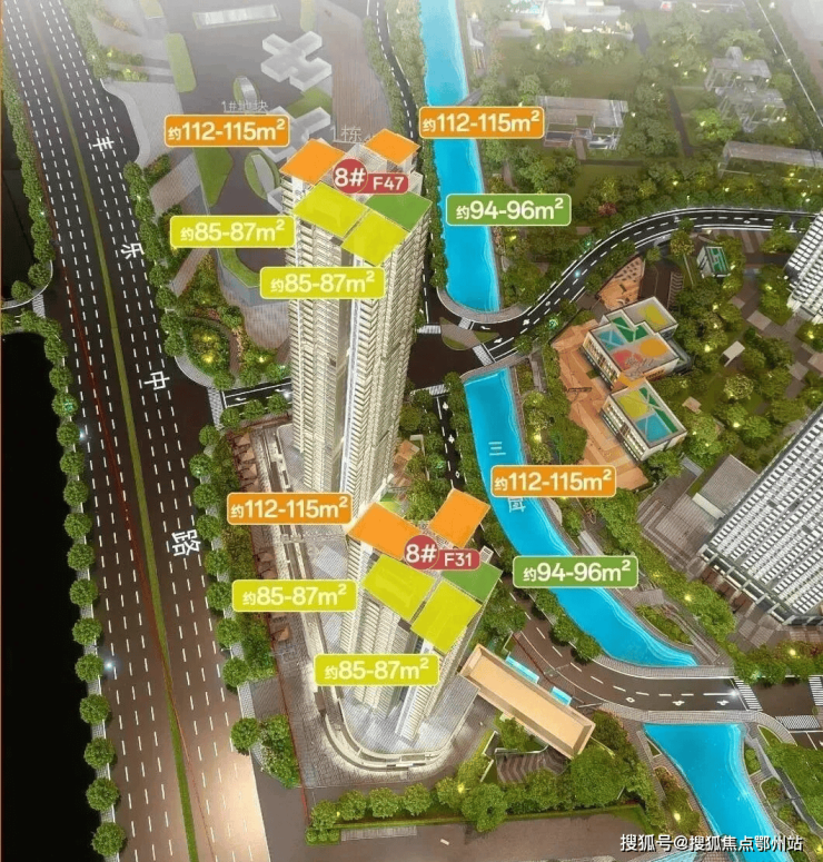1#共47层,3梯5户,2#共31层,全盘都是南向户型。
