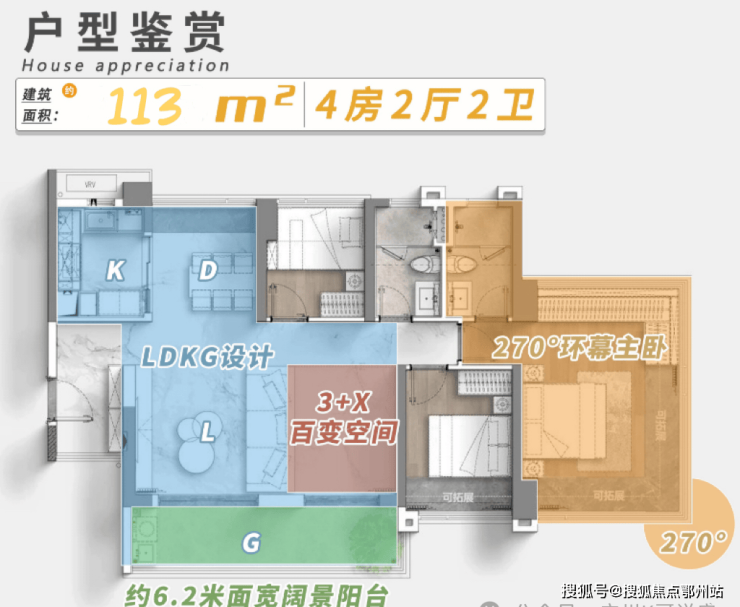 2梯5户,113㎡户型分布在北侧的2条梯腿,98㎡户型分布在东南侧梯腿,剩余2条梯腿则是88㎡户型。