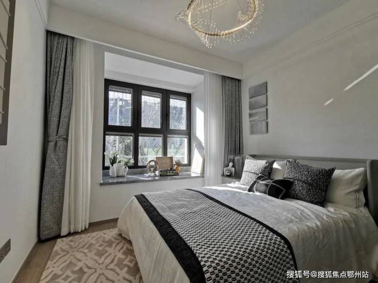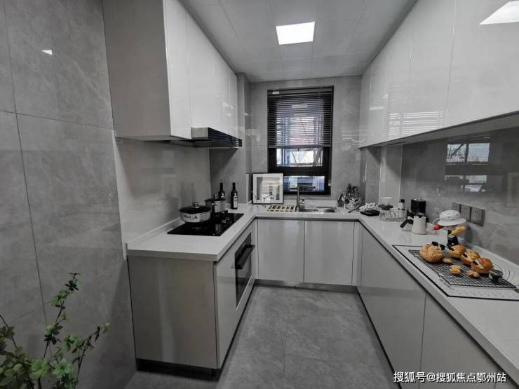 U型厨房,操作台与厨房动线符合人体工学设计,转身之间,洗、切、烹、炒流畅便捷,与餐客厅形成一条笔直的居家生活动线; 三间卧室全附带飘窗,拓宽了景观视野的同时,增加了实际空间使用率; 南向主卧做了带独立卫生间的套房设计,仪式感和私密性更强。