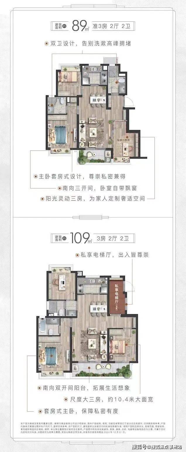 在建筑内部,从人性化角度考量的户型极富考究。无论是 89㎡的双卫、套房式主卧,或是109㎡的10.4米大开间、阔阳台,从客厅、卧室到阳台、厨房,每一处功能空间既雍容大度,又尽可能地接受阳光的洗礼,展现尺度、功能与舒适性的理想平衡。