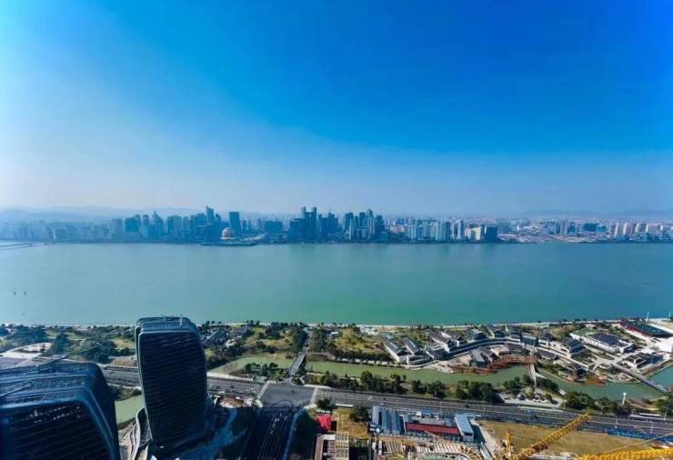 项目直线距离钱塘江约450M,以约90万方恢弘体量、约240米天际高度,满足世界峰层人物精神欲望的最高向往,成就扛鼎杭州江岸华宅的全球天际资产。