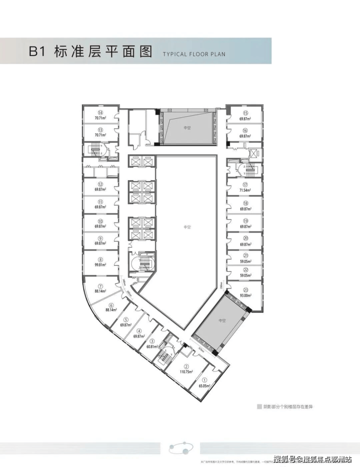 楼层状况:B-1#楼30层,B-2#楼19层,B-2#楼标准层6梯29户
