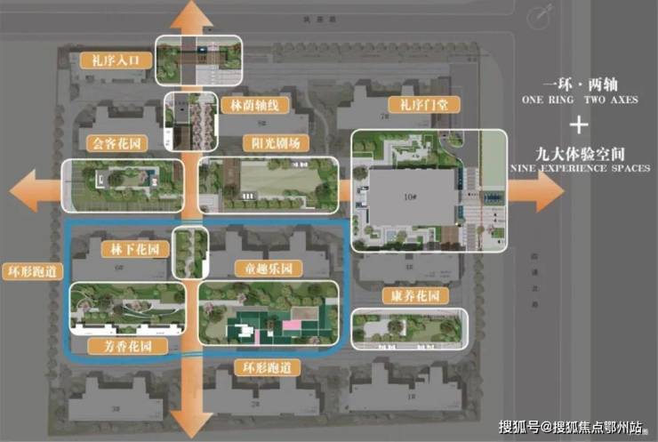 锦上和风 通过 “一环两轴九大空间” 布局,把 森林公园元素 融入社区: