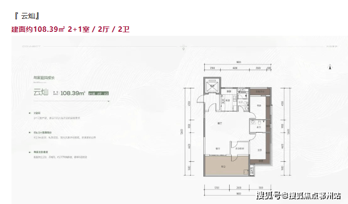 建面约102.23㎡ 2+1室 / 2厅 / 2卫