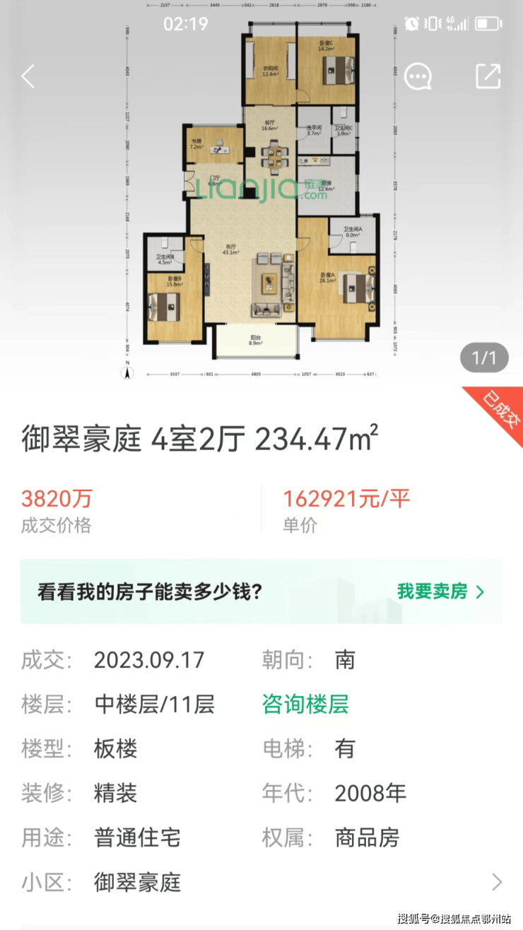 古北作为上海第一代国际住区,天生自带贵族光环,二手房价一直很坚挺,御翠豪庭9月成交了一套房源,单价16.3万/㎡(不含税+中介费等)。