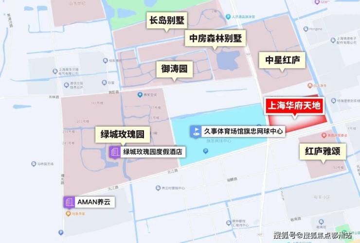 上海华府天地正占位旗忠别墅区核心位置,毗邻旗忠网球中心,被绿城玫瑰园、中星红庐等豪宅围绕。