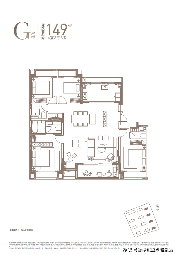 还有部分建面约149㎡滨水四房大平层,仅9-10层,值得注意该户型有“3卫”。