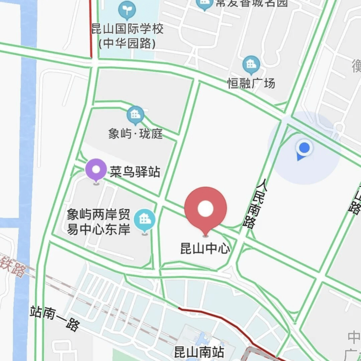 昆山南站直线距离100米,至上海18分钟,至苏州11分钟。