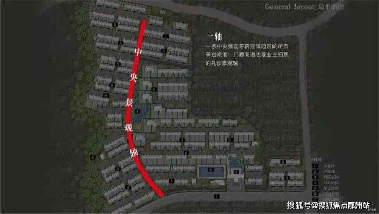 一轴:一条中央景观轴线,串联园区亭台楼水榭鞥景观