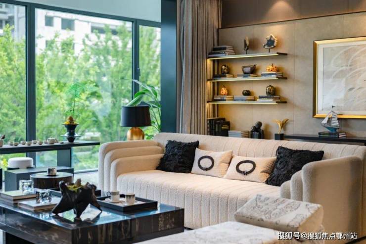 书房与客厅连通, 构筑约6.9米大横厅的家庭社交中心,搭配约6.9米阳台全景落地窗 ,仿佛像一条连贯的“风景长廊”,将窗外的风景成为私家珍藏,带来“全景舱”的极目视界,而且让居家动线更有趣味性。