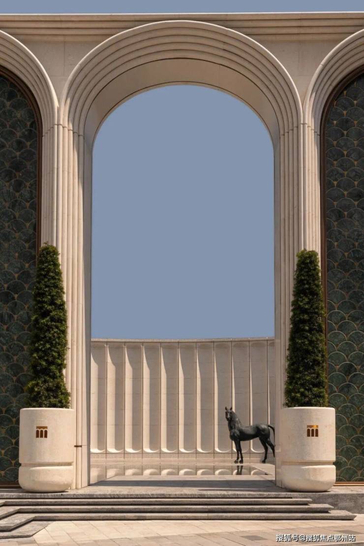 建筑设计由九米设计操刀,以“意式美学与斯卡帕叠级手法”为核,将古典秩序与现代建筑语言融合。约11.5米高石材基座,融入西方古典拱券元素,通过叠级手法增强空间层次感,奠定庄重基调。