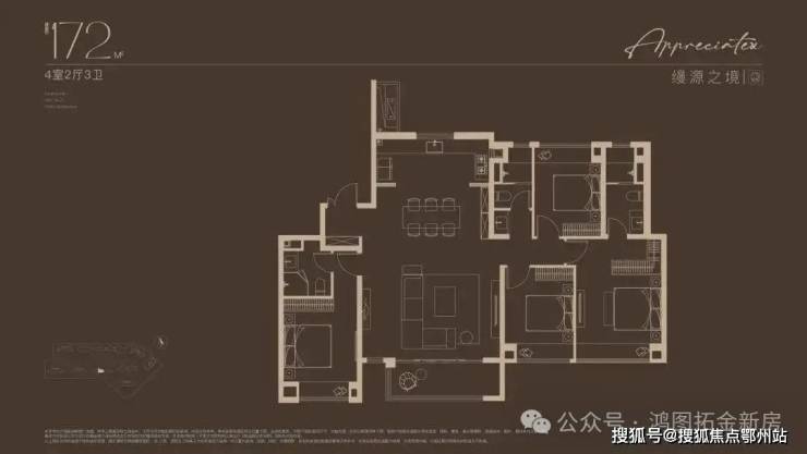 准一梯一户的配置,让业主独享入室前厅的过渡空间,玄关处的可定制收纳系统,让归家时刻剥离喧嚣,私密与尊崇感不言自明。步入室内,约14米南向四开间以无界视野拥抱阳光,LDKB一体化设计将客厅、餐厅、厨房与约7米宽幕阳台串联成通透的生活场域,无论是家庭聚会的烟火气,还是独处时的静谧,皆能找到理想场景。双奢阔套房设计则重新定义居住的从容:主卧套房以全景飘窗及酒店式卫浴空间,构筑私享领地;次卧套房兼顾长辈或子女的起居需求。南向双套卧配置,让多代同堂的生活既有温度又存边界。细节之处,一线精装品牌更显匠心:日立中央空调(或同档次品牌)、博世地暖(或同档次品牌)、迈迪龙新风(或同档次品牌)、高仪花洒(或同档次品牌)、恩仕(马桶)、高仪(卫生间龙头花洒)、弗拉卡(厨房龙头)、西门子三件套、怡口(净水器)……一切都在无声中诠释着塔尖生活的质感。