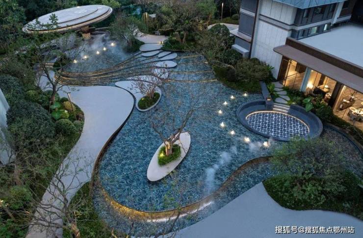 内部:“一轴一带一环九园”景观体系(潮汐花园、下沉会所、环形跑道等)