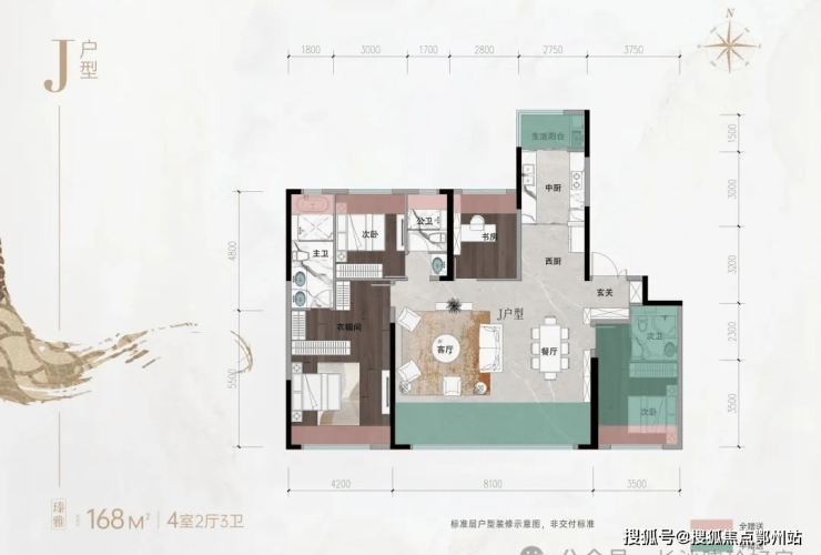 ④J户型-168㎡ 臻雅4室2厅3卫