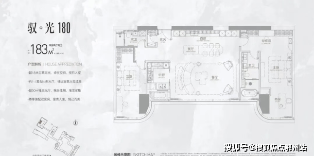 精装修采用奢玉背景墙、整包皮革、大理石地面、闪粉烤漆柜门等,硬装部分使用嘉格纳、高仪、博世、唯宝、弗兰卡等大牌,还有波浪纹理弧形穹顶、无缝化拼花工艺、嵌入式隐形精钢拉手、抗冲击朦胧美夹丝玻璃、柔和倒角处理及踢脚线暗线处理。