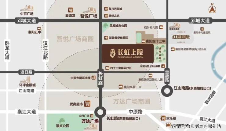 从项目出发,从东南北三个方向都可快速抵达襄阳各个区域,向北到吾悦广场仅1千米,向南到万达广场2.5千米,襄阳火车站3千米,再往东向辐射,可直至刘集机场、襄州火车站、襄阳东高铁站,全程耗时约半小时。